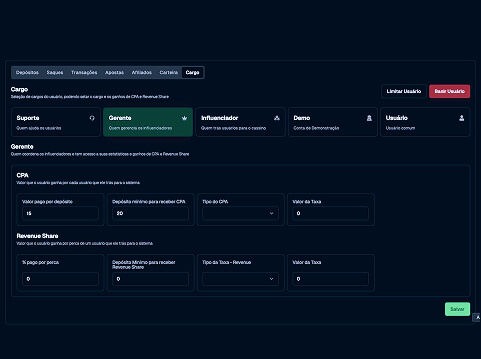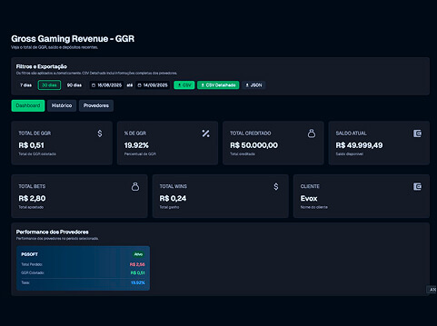 Métricas por período, ranking de afiliados, GGR ao vivo e controle de acesso por perfis