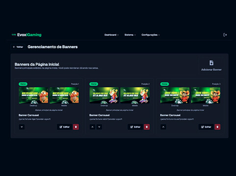 Destaque jogos, gerencie banners e categorias com um clique